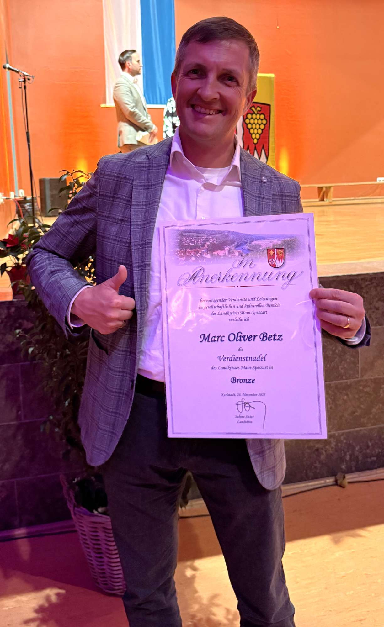 Am 28.11.2025 wurde Marc für sein Engagement vom Landkreis Main-Spessart ausgezeichnet und erhielt die Verdienstnadel in Bronze. Vielen herzlichen Dank für so viel Engagement für unseren Verein!